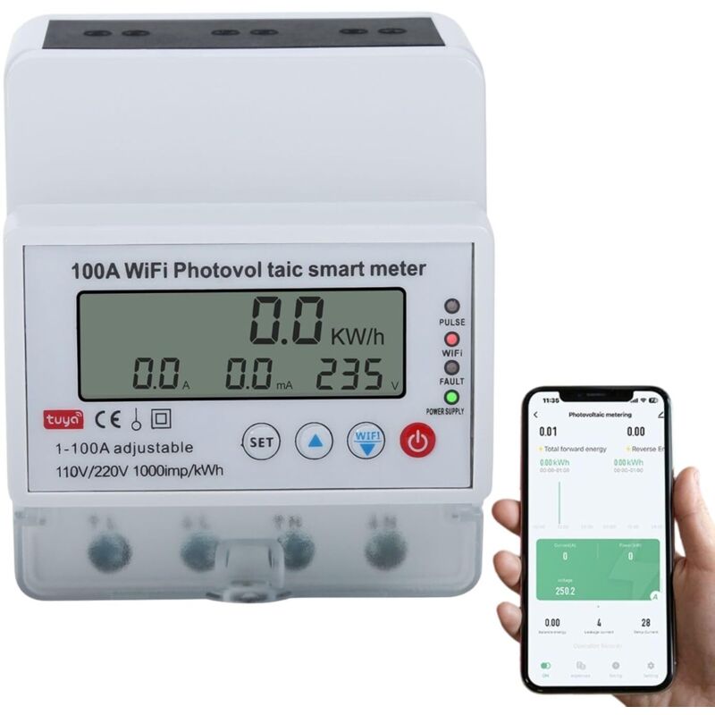 Compteur d'Énergie Intelligent WiFi 100A Monophasé 4P Tuya Smart wifi Compteur d'énergie Photovoltaïque Disjoncteur Minuterie Interrupteur Compteur