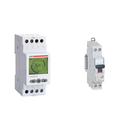 VEMER VE512000 Simply-D - Minuterie Programmable Numérique, Interrupteur Horaire avec Programmation & Legrand - Disjoncteur Phase + Neutre - 20A - bornes à vis - 1 Module