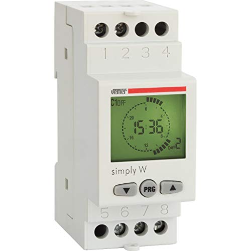 VEMER VE513800 Simply-W - Minuterie Programmable Numérique, Interrupteur Horaire avec Programmation Hebdomadaire, Montage sur Rail DIN, Blanc