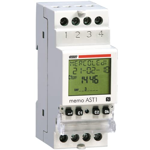 VEMER VE344800 MEMO AST1 - Minuterie Crépusculaire Astronomique, Interrupteur avec Interface NFC, Installation sur rail DIN, 1 Canal, Blanc