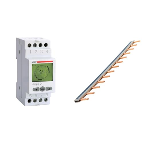 VEMER VE512000 Simply-D - Minuterie Programmable Numérique, Interrupteur Horaire avec Programmation Journalière, Montage sur Rail DIN, Blanc & Peigne 13 modules Noir/Blanc Longueur 220mm