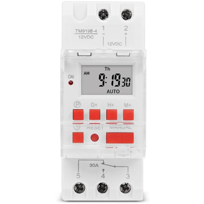 Programmateur Horaire Electrique Minuterie Relais Interrupteur Horaire afficheur LCD Préréglage Hebdomadaire Programmable, 12V DC 30a Minuterie