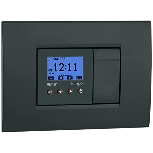 VEMER VE787500 Tempo Interrupteur numérique pour Programmation horaire ou astronomique, minuterie idéale pour Stores, lumières, portails, Installation boîte encastrée (2 modules), Blanc/Gris