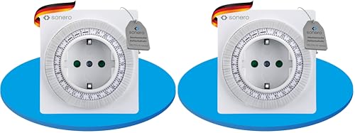 sonero® Interrupteur horaire mécanique pour Prise, minuterie 24 Heures, 96 Segments de Commutation, Interrupteur Marche/Auto, IP20, 3500 Watts, Blanc (Lot de 2)