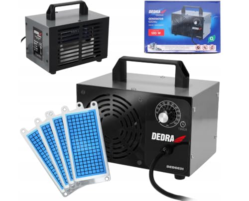 DEDRA DED6631 Générateur d'ozone 60 000 mg/h, 120 W, minuteur : 1-60 min, élimine les odeurs et désinfecte, débit d'air 200 m²/heure avec 4 plaques génératrices d'ozone incluses