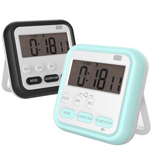 Geepen 2 Pièces Minuteur de Cuisine magnétique, Minuteur Digital Chronomètre et Compte à Rebours avec Grand Écran LCD pour l'exercice, l'Étude, la Cuisine et Le Four