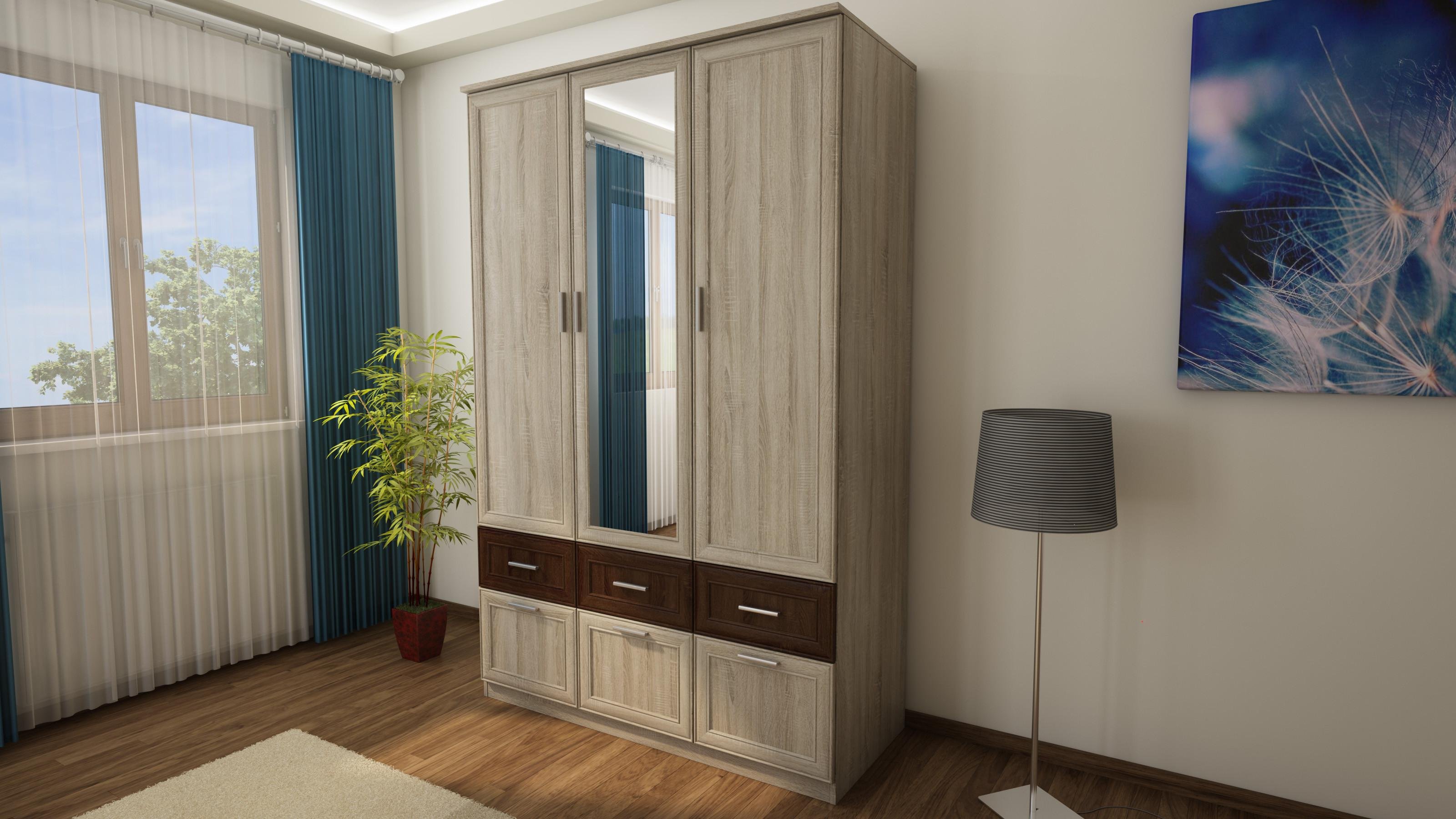 Armoire de chambre à coucher avec miroir 140x216 cm - chêne clair, 3 tiroirs