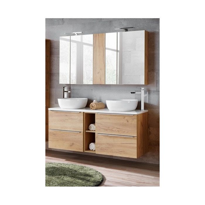 Ensemble meuble vasques à poser + armoire miroir - 140 cm - elise oak