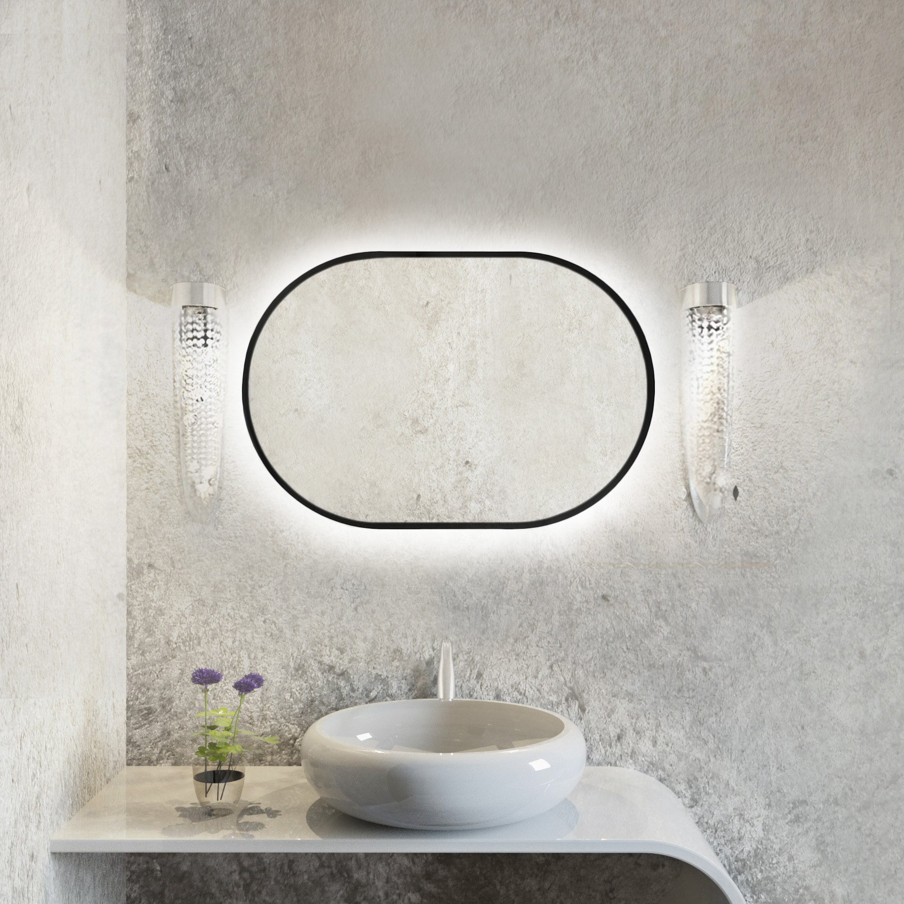Baltica Design Tiny Border Pastille miroir 60x140 cm ovale avec éclairage noir 5904107929156