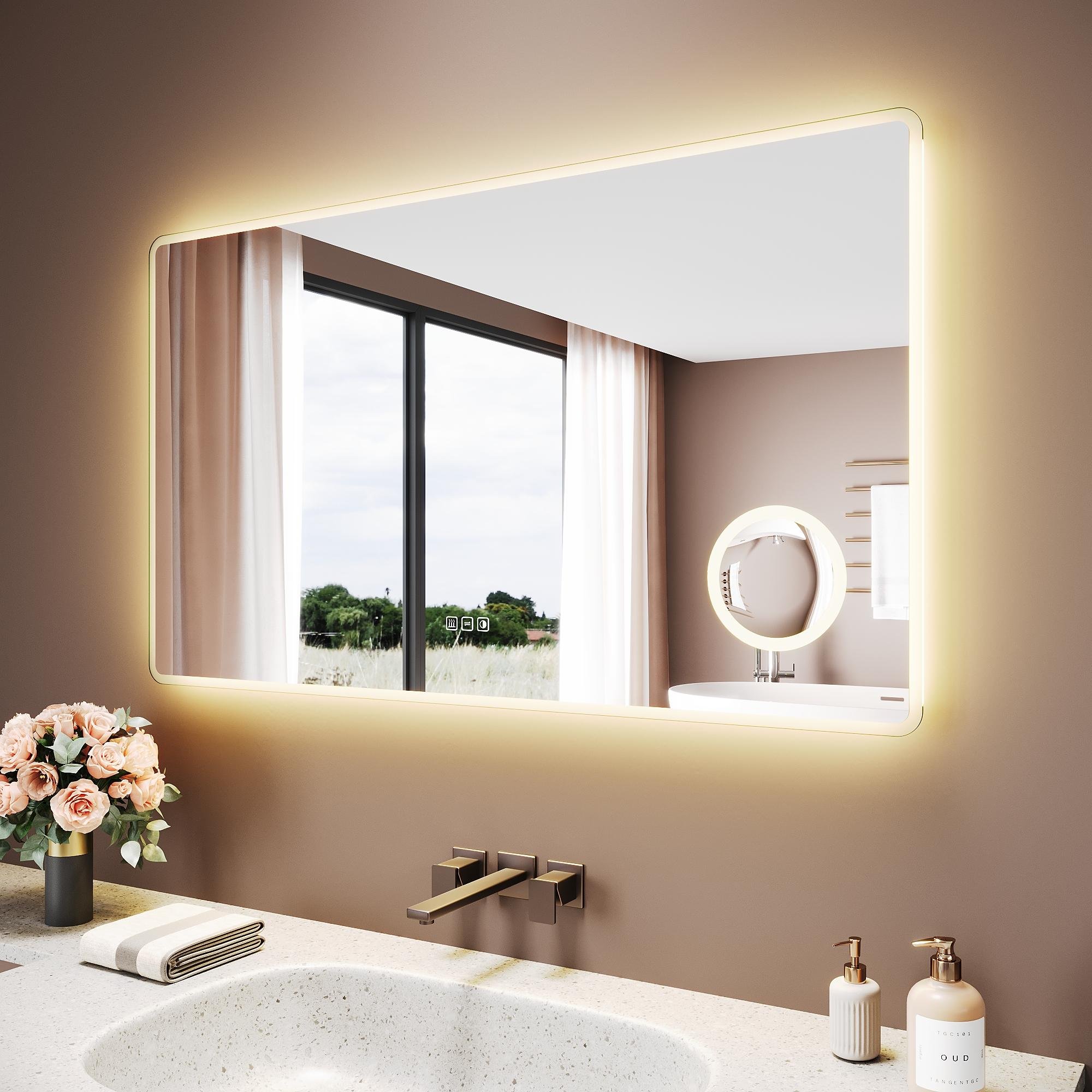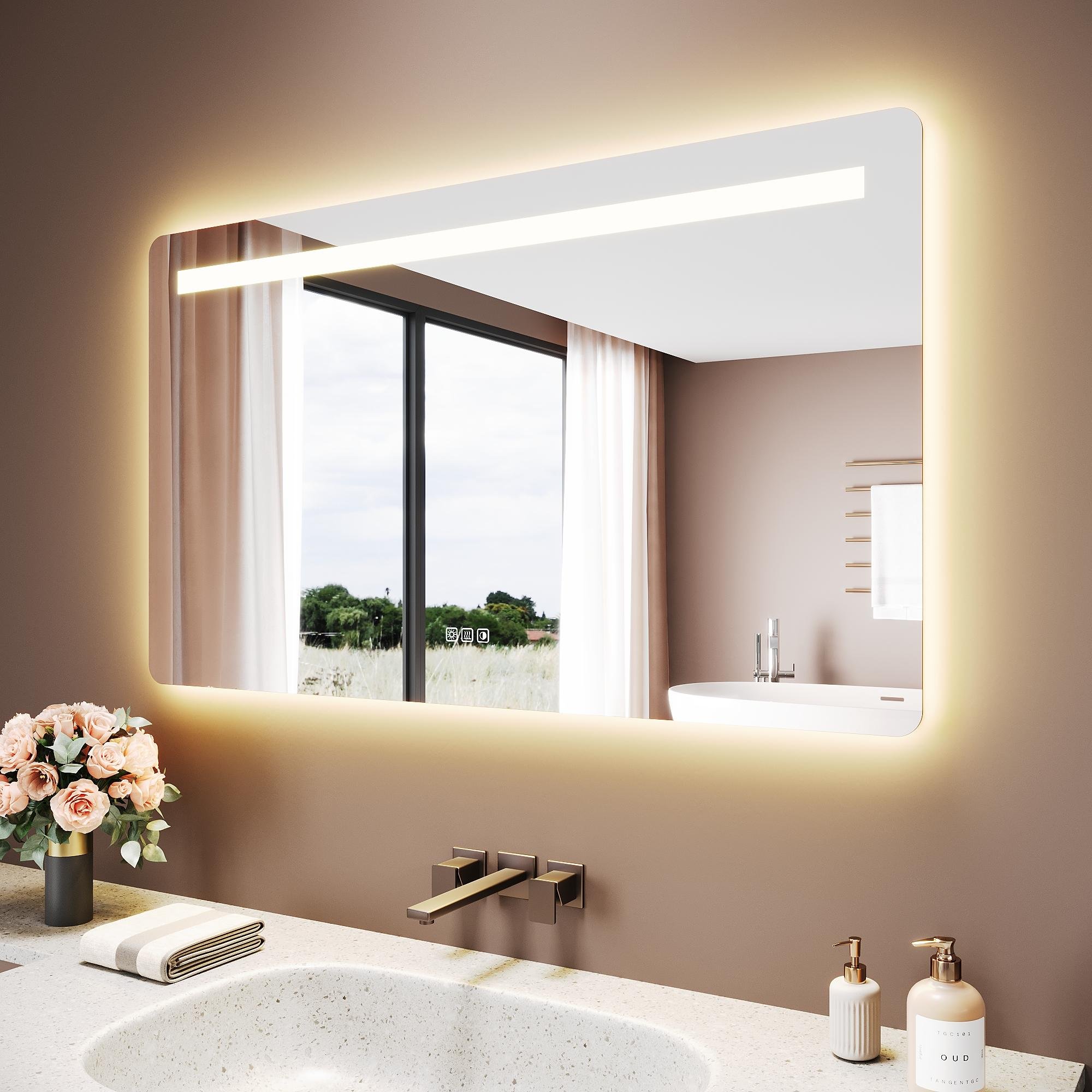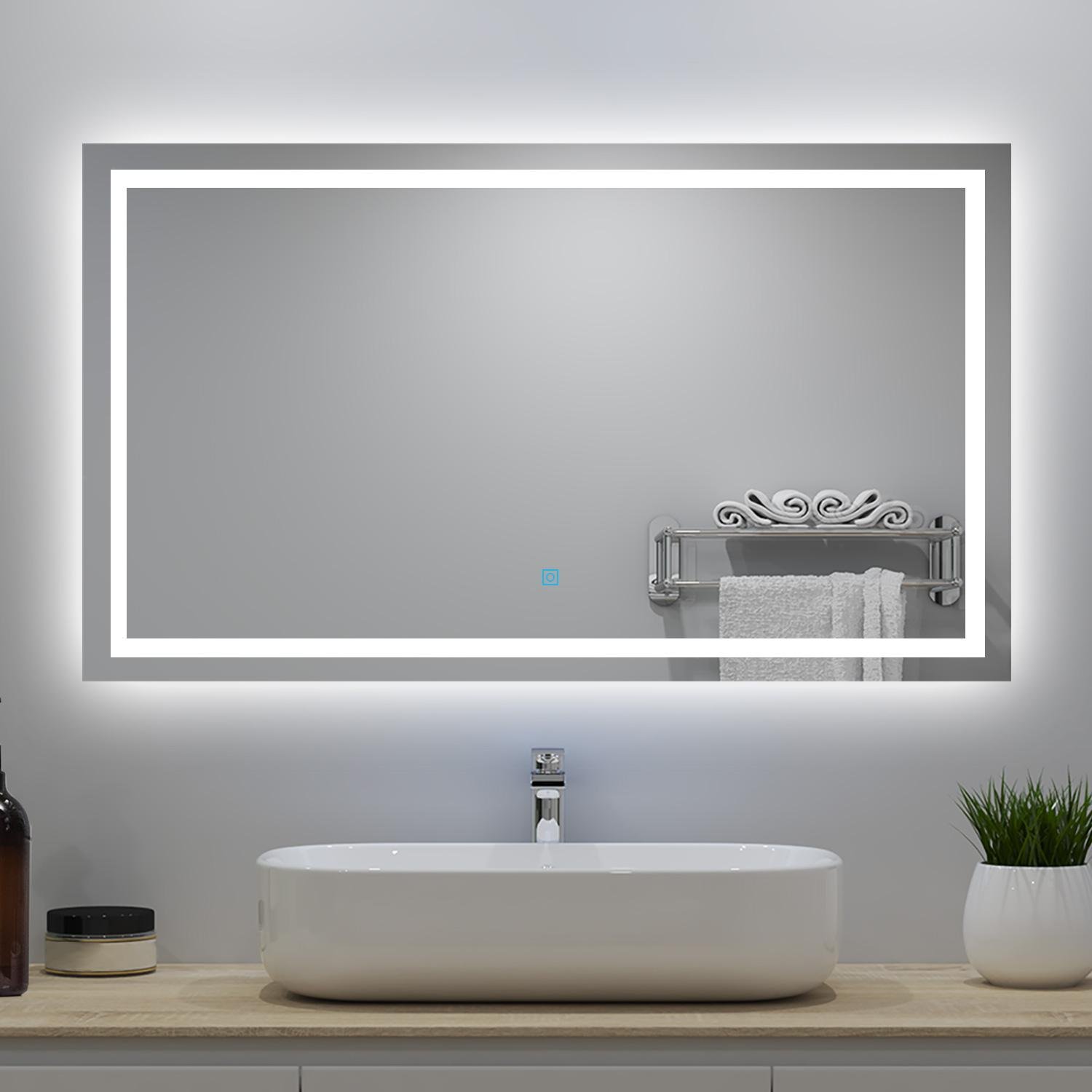 Miroir lumineux 140x80 pour salle de bain antibuée boutons tactiles lumière froide saniland M2C-1480