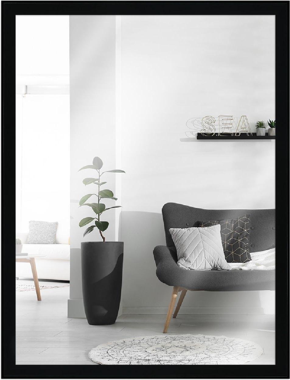 MendeFrames H025 Miroir mural bois 30x30 cm noir