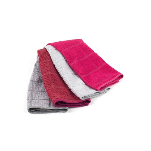 Beldray LA059338CDUEU Lot de 4 Chiffons d'Époussetage et de Nettoyage en Microfibre, 30 x 30 cm, Couleurs Assorties - Multifonction pour la Cuisine, Salle de Bain, Maison, Voiture, Miroir, Fenêtres