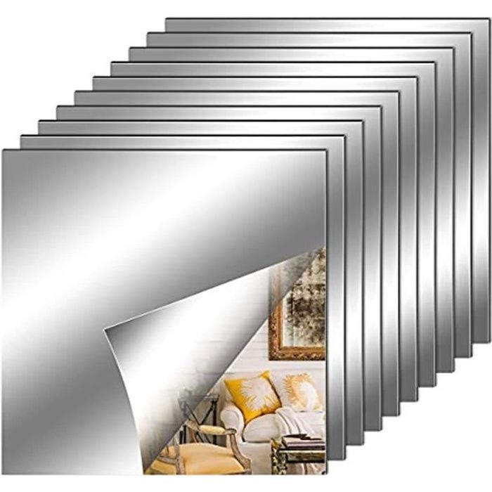 10 Pièces Miroir Muraux Autocollant 30 x 30 cm Miroir Carrés Adhésif Décoratif Argenté Amovible Autocollant Mural Décorative Auto A