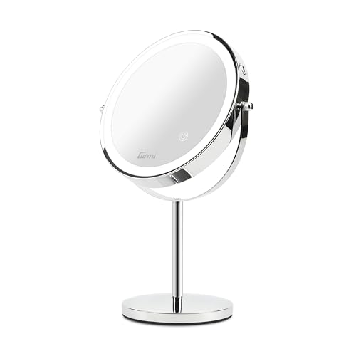 Girmi BE02 Miroir de Maquillage avec lumière LED, loupe 1x/3X, éclairage 3 Couleurs, Rechargeable avec Double Miroir, Rotation à 360° et Bouton Tactile, chromé