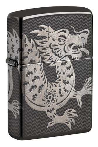 Zippo - Briquet Tempête Motif Dragon Asiatique, Noir Poli Miroir, Photo Image 360°, Rechargeable, Réutilisable, Résistant Au Vent, Coffret Cadeau, Fabriqué Aux États-Unis