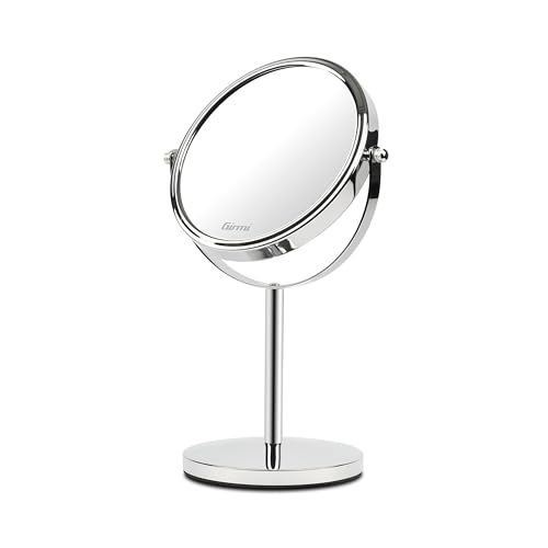 Girmi Miroir de Maquillage de Table BE01 Double Face avec Rotation 360°, Miroir grossissant de Maquillage, chromé