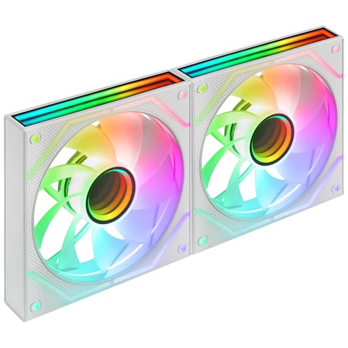 Mars Gaming MF-3DPROX2R, Kit de 2 Ventilateurs 120mm, Pales Inversées, Éclairage ARGB Triple Miroir Infini 360°, Contrôle PWM, Roulements FDB, Ventilateurs PC avec Compatibilité Totale ARGB, Blanc