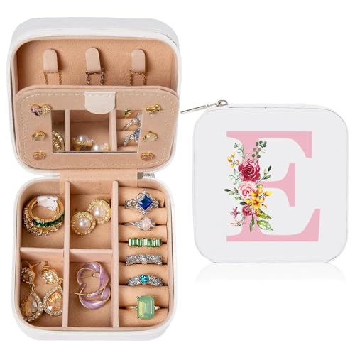 hamatata Boite a Bijoux de Voyage Personnalisée Initiale E, Petite Boîte de Rangement Portable Avec Miroir, Boîte à Bijoux pour Femme Fille