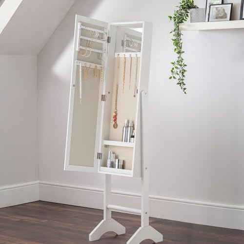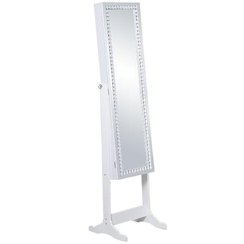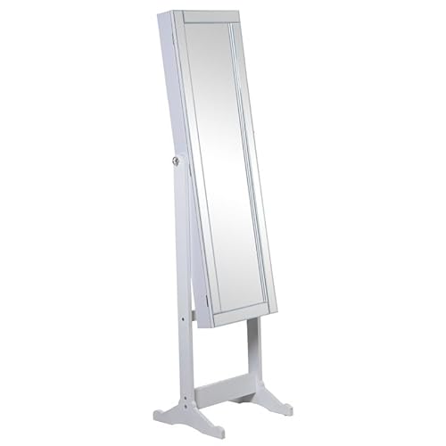 DONREGALOWEB Miroir à bijoux sur pied avec porte et clé en bois de couleur blanche