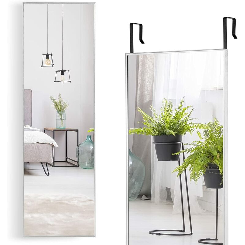 RELAX4LIFE Miroir Accroche Porte 120x37cm Cadre Alliage d'Alu Verre avec Film Antidéflagrant, Miroir Porte Suspendu pour Chambre Vestiaire Entrée (Argenté, 120 x 37 cm)
