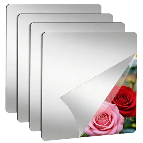 KUBDPQOR miroirs Autocollants muraux 15x15 cm – Lot de 4 miroirs en Plastique incassables avec grattoir de Nettoyage – Miroir décoratif adhésif pour Porte, Salle de Bain, Chambre, Dressing