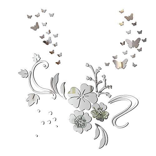 MEJOSER 2 Ensembles Miroir Stickers Muraux Autocollant Mural Motif Papillon Fleur de Vigne pour Enfants Chambre Salon Decoration Bricolage