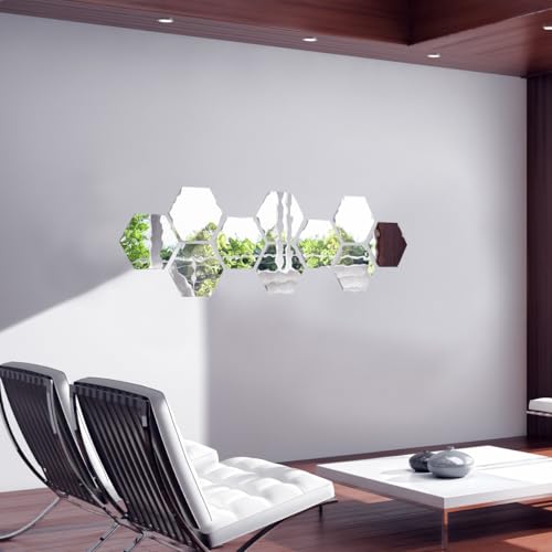 Ambiance Sticker Effet Miroir Autocollant Muraux Comme un Miroir Hexagone Argenté Mirror-like Sticker Murale pour Bébé, Chambre d'enfant et Salon - Pack de 12 Stickers