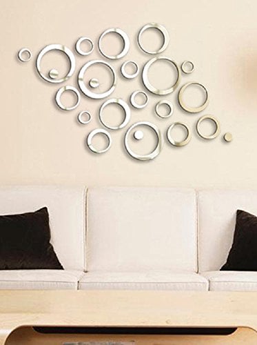 Ambiance Sticker Effet Miroir Autocollant Muraux Comme un Miroir Anneaux Designs Mirror-like Sticker Murale pour Bébé, Chambre d'enfant et Salon - H50 x L75 cm