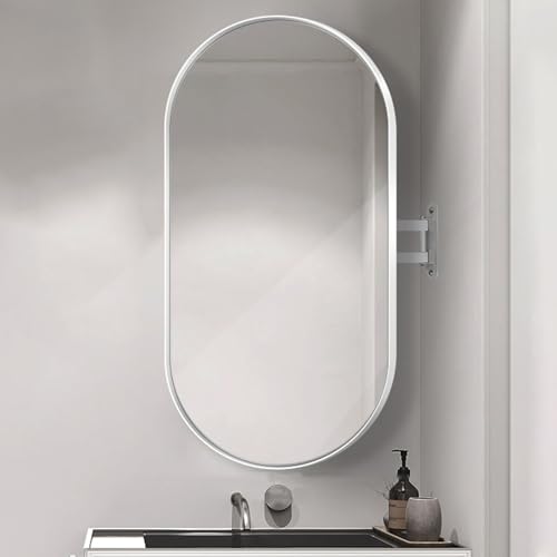 Miroir Mural Ovale D'angle de Salle de Bain avec Bras Articulé Pivotant et Cadre En Métal, Miroir Incassable, Miroir Suspendu pour Salon Moderne, Vertical et Horizontal ( Color : White Frame , Size :