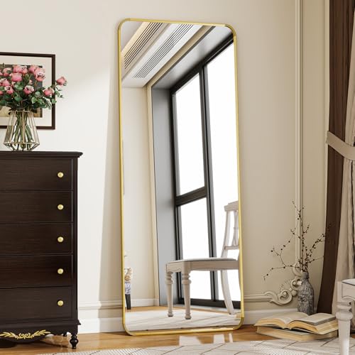 Koonmi Miroir d'angle Rond intégral sur Pied avec Support pour Chambre, Montage à Suspendre pour Salon, vestiaire, 58 x 168 cm, doré