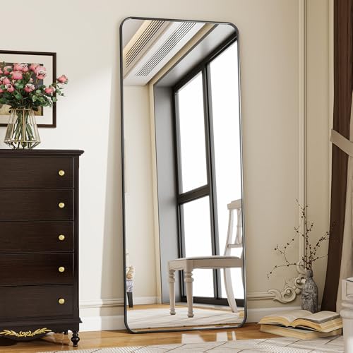 Koonmi Miroir d'angle Rond intégral sur Pied avec Support pour Chambre, Montage à Suspendre pour Salon, vestiaire, 58 x 168 cm, Noir