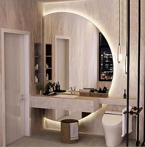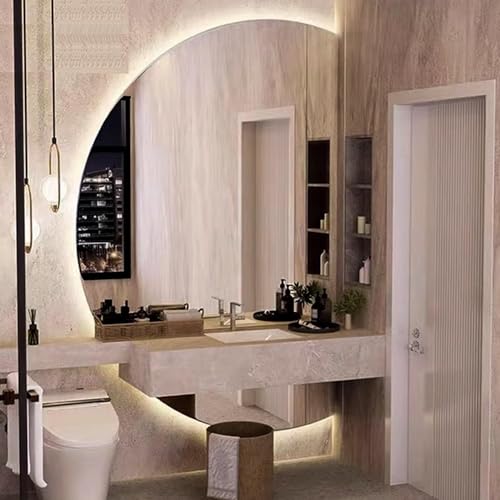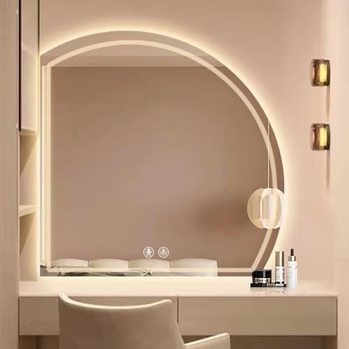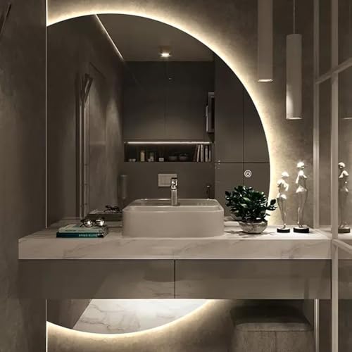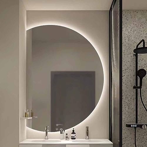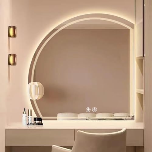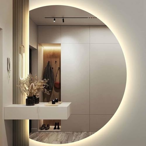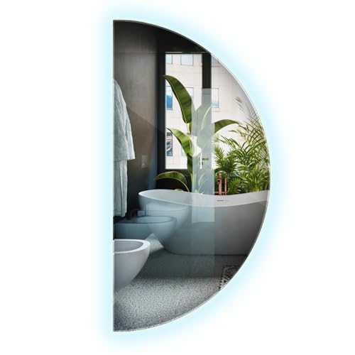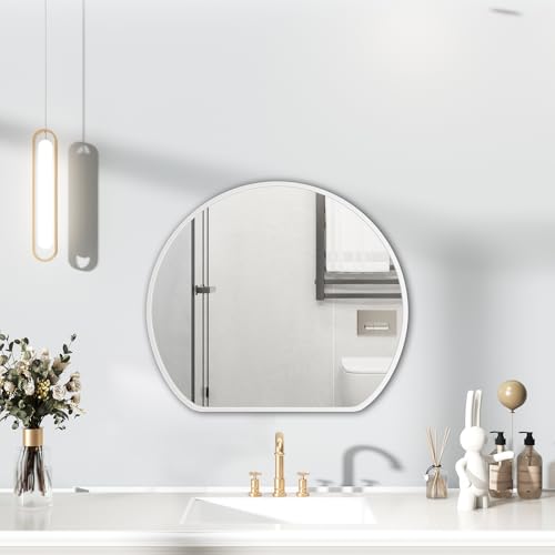 HIGHBATH Miroir Mural en Demi-Cercle avec Cadre Blanc de 50 cm pour Salle de Bain, Dressing et Salon