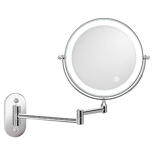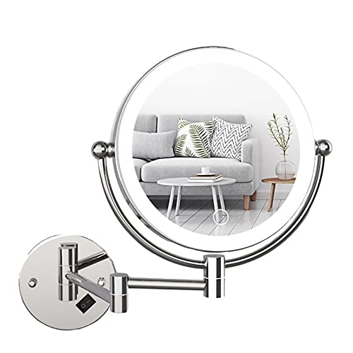 YJHH Miroir Grossissant Lumineux Mural X10 Miroir Salle De Bain Mirroir De Maquillage 8 Pouces Double Face LED 360 Degrés Rotation Pliable Extensible, Spa Hôtel,Argent