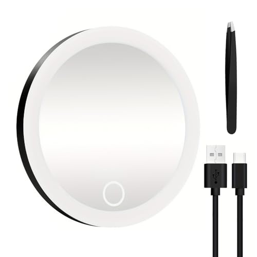 Miroir Compact avec Lumière LED, Miroir grossissant Lumineux de Poche Rechargeable et Pliable, Portable Miroir Maquillage, Miroir de Voyage, Double Face, Petit Miroir de Poche