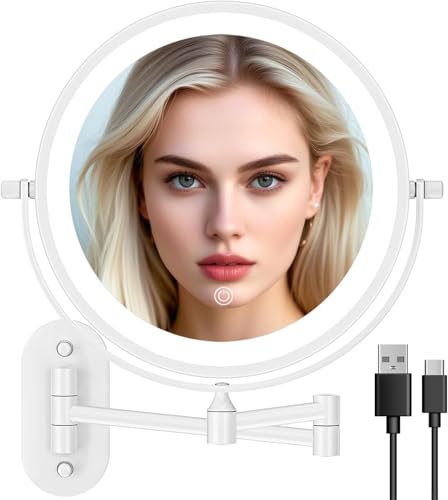 SWHC Miroir Grossissant Lumineux Mural, Miroir Maquillage Extensible Miroir Cosmétique Double Face Miroir de Rasage 360° Pivotant Mirroir Murale Gradation Tactile, USB Rechargeable