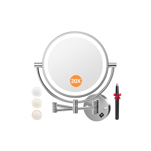 MIYADIVA Miroir grossissant Lumineux, Miroir Maquillage Lumineux, x20 LED Trois lumières colorées, miroirs Coiffeuse avec éclairage réglable, Bureaux