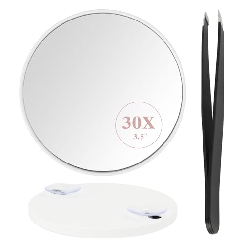 SANWOOD Miroir grossissant x30, miroir de maquillage avec ventouses amovibles et pince à épiler, miroir de courtoisie pour salle de bain, chambre à coucher
