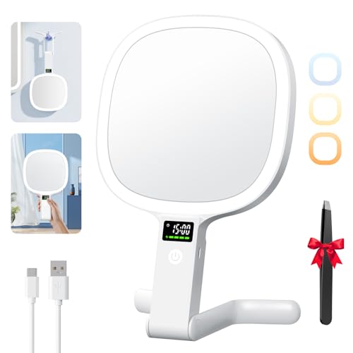 Auxmir Miroir Grossissant Double Face 1X/30X, Affichage LED et Commande Double, Miroir Maquillage Grossissant 2500mAh, 3 Couleurs Éclairage, Mirroir LED avec Pince à Épiler pour Voyage/Bureau/Chambre