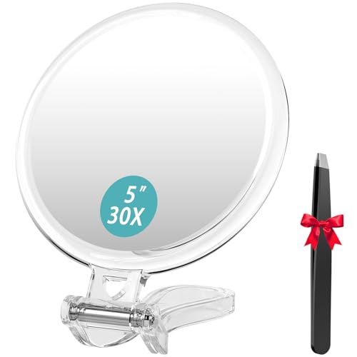 TELAIN Miroir grossissant 30X pour Voyage avec poignée, Double Face 1X/30X Miroir à Main pour Maquillage