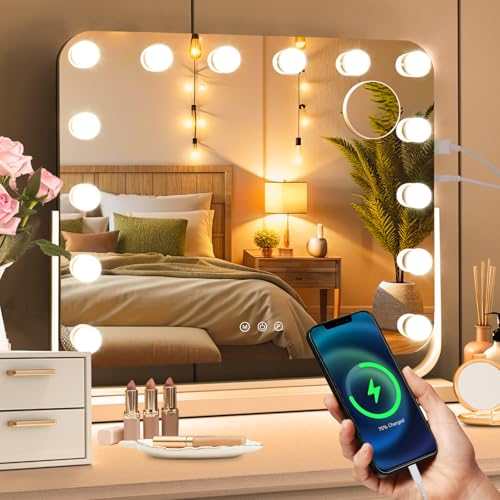 Homcom Miroir maquillage Hollywood lumineux LED intensité réglable pour coiffeuse dim. 41L x 13P 51H