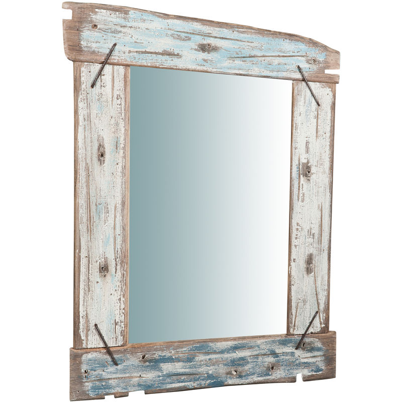 Biscottini - Miroir mural de salle de bain rectangulaire Miroir horizontal vertical avec cadre en bois blanc Shabby Long miroir à suspendre