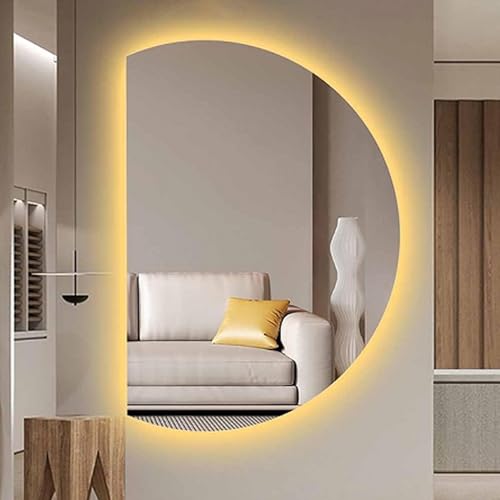 Miroir LED Demi-Rond, Miroir Décoratif Créatif sans Cadre, Miroir Lumineux, 50 X 45 Cm | 60 X 54 Cm | 70 X 63 Cm | 80 X 72 Cm | 90 X 81 Cm, Intensité Variable 3 Couleurs., Down Cut-b, 60x54cm