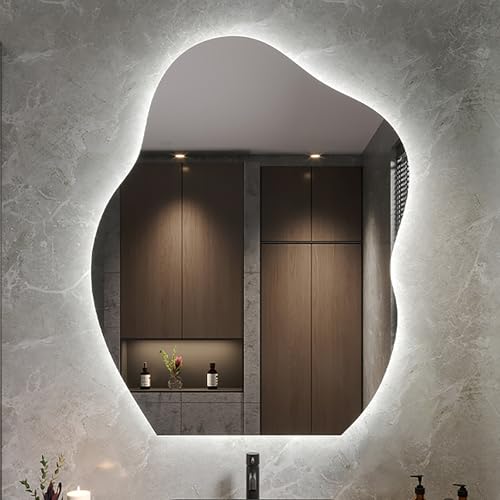 Miroir de Salle de Bain Irrégulier, Miroir Lumineux Anti-buée Mural Cosmétiques Mural Lumière Illumination, avec éclairage LED, 3 Couleurs Lumière, Gradable, Interrupteur Tactile(Color B,50cm)