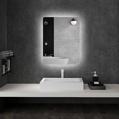 YU YUSING Miroir de Salle de Bain avec Éclairage 70X50cm, Miroir Lumineux LED Cosmétique Mural avec 3 Couleurs Dimmables de Lumière, Interrupteur Tactile, Anti-buée, Affichage L'heure, IP44 Étanchéité