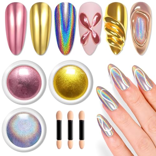 Poudre Chrome Ongle Or Rose - LEDSUUEI Poudre Ongle Métal Argenté Holo, Poudre Effet Miroir Super Magique pour Ongles Poudre Pailletée, Poudre Pigment Ongles Nail Art 3g: Facile Faire Déco DIY Salon