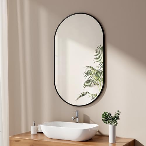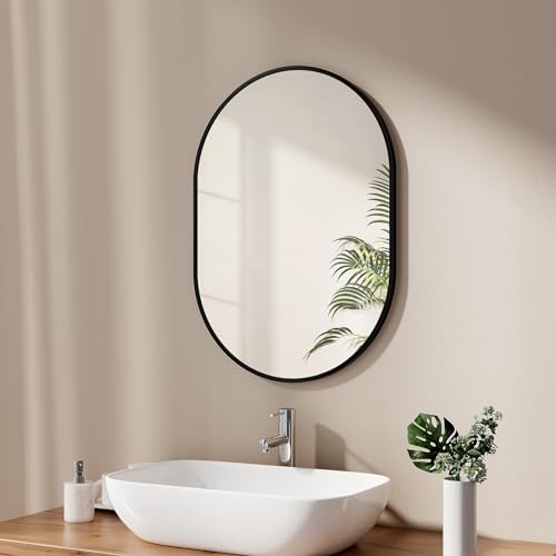 EMKE Miroir de Salle de Bain Ovale 50 x 70 cm avec Cadre Noir - Miroir Mural Ovale Horizontal/Vertical - Miroir Mural HD décoratif pour Salle de Bain, Couloir