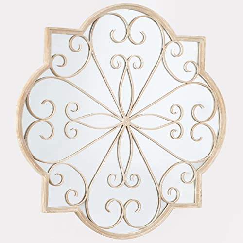 MirrorOutlet Miroir Mural décoratif en métal en Forme de pétale de Rose Style Shabby Chic Crème 90 x 90 cm