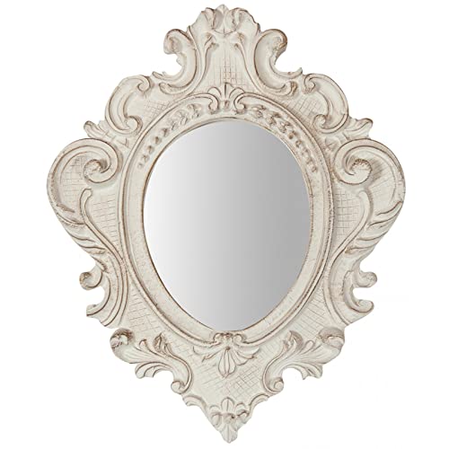 LONGWIN Miroir Mural Ovale Vintage Blanc pour décoration Murale, Petit Miroir Mural décoratif à Suspendre pour Salon/Chambre à Coucher, Miroir Ovale décoratif pour Parfum/Plateau de courtoisie 25,4 x