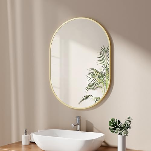 EMKE Miroir de Salle de Bain Ovale 50 x 70 cm avec Cadre doré - Miroir Mural Ovale Horizontal/Vertical - Miroir Mural HD décoratif pour Salle de Bain, Couloir