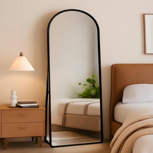 Générique Miroir Complet arqué, 162 x 53 cm, Grand Miroir Pleine Longueur, avec Support, Mural, sur Pied, pour Chambre Salon Entree, Noir